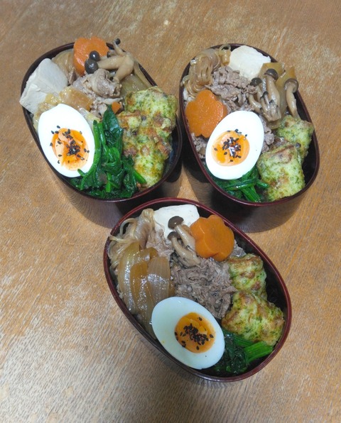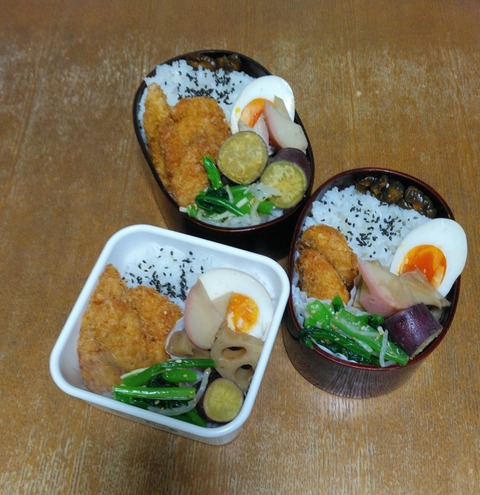 おはようございます☆今日は土日より朝が寒くなかったな*今日のメニュー・ササミフライ・味たまご・れんこんとかまぼこの煮物・おさつバターしょうゆ···