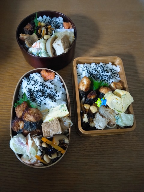 おはようございます⭐どんよりして暑い。10月も下旬に半ぞて。*今日のメニュー・海苔巻きチキン・さんまのお酢煮(私)・ねぎ入りだし巻き・厚揚げと結···