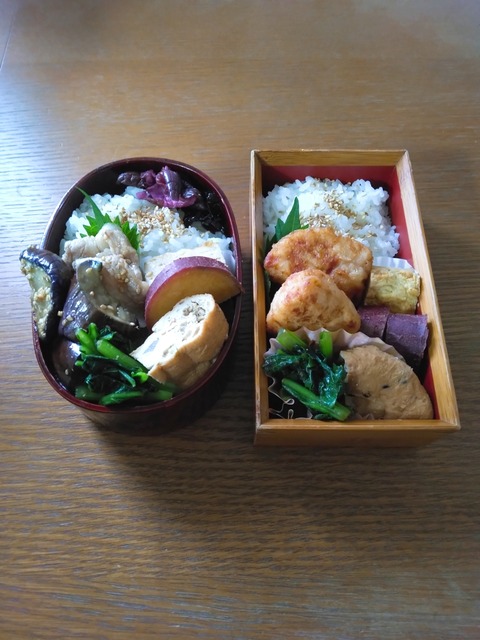 夫は「豚こま肉で焼き肉弁当」私は「作り置き・冷凍食品弁当」