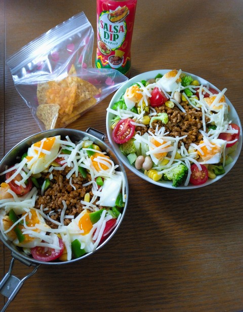 おはようございます⭐昨日も暑いし、今日も暑い☀*今日のメニュー・タコライス タコミート、たまご、トマト、 きゅうり、ピーマン、コーン、 レタス···