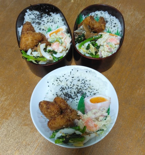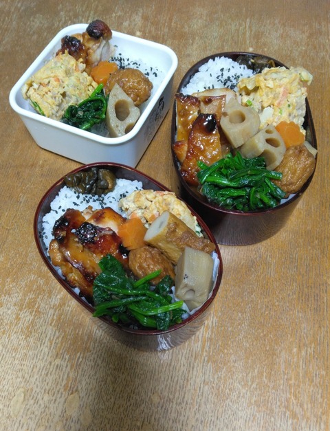 こんにちは☆北風がひゅーひゅー!寒い!*今日のメニュー・チキンステーキしょうが醤油(お惣菜)・挽き肉とじゃがいも入りたまご焼き・れんこんと練り···