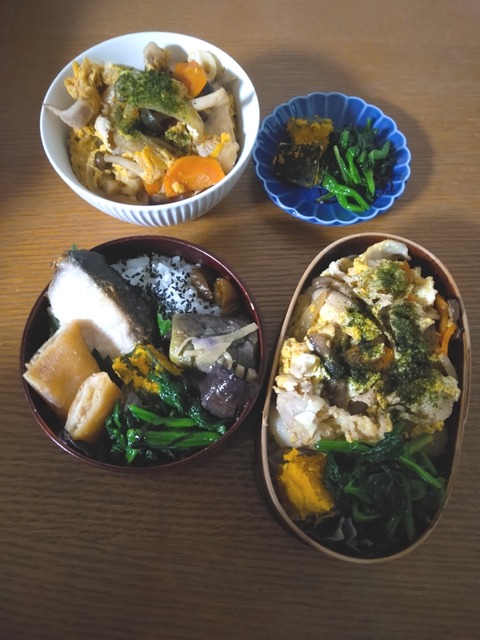 おはようございます⭐雨からのやっと晴れ!*今日のメニュー相方と娘・開花どん・かぼちゃの煮物・ほうれん草塩こんぶ和え自分べん・ぶり塩焼き・茄子···