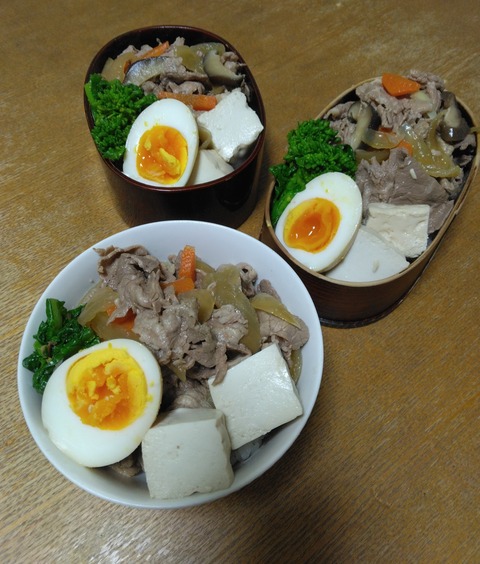おはようございます☆昨日は本当に雪が降った!*今日のメニュー・牛どん・煮たまご・菜の花お浸し(娘にはほんの少し)家族3人分の写真撮れた。娘のは小···
