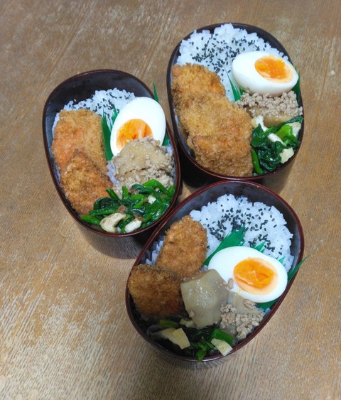 おはようございます☆土日は寒し!洗濯物が乾きません?*今日のメニュー・サーモンフライ・味たまご・里いものそぼろ煮・ほうれん草とお揚げとお浸し・···