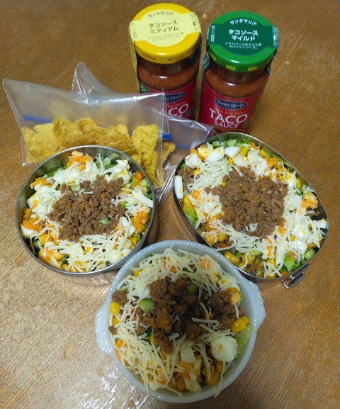 おはようございます☆今日もグズグズなお天気?*今日のメニュー・タコライス タコミート、レタス、きゅうり、 玉ねぎ、コーン、にんじん、 チーズ、···